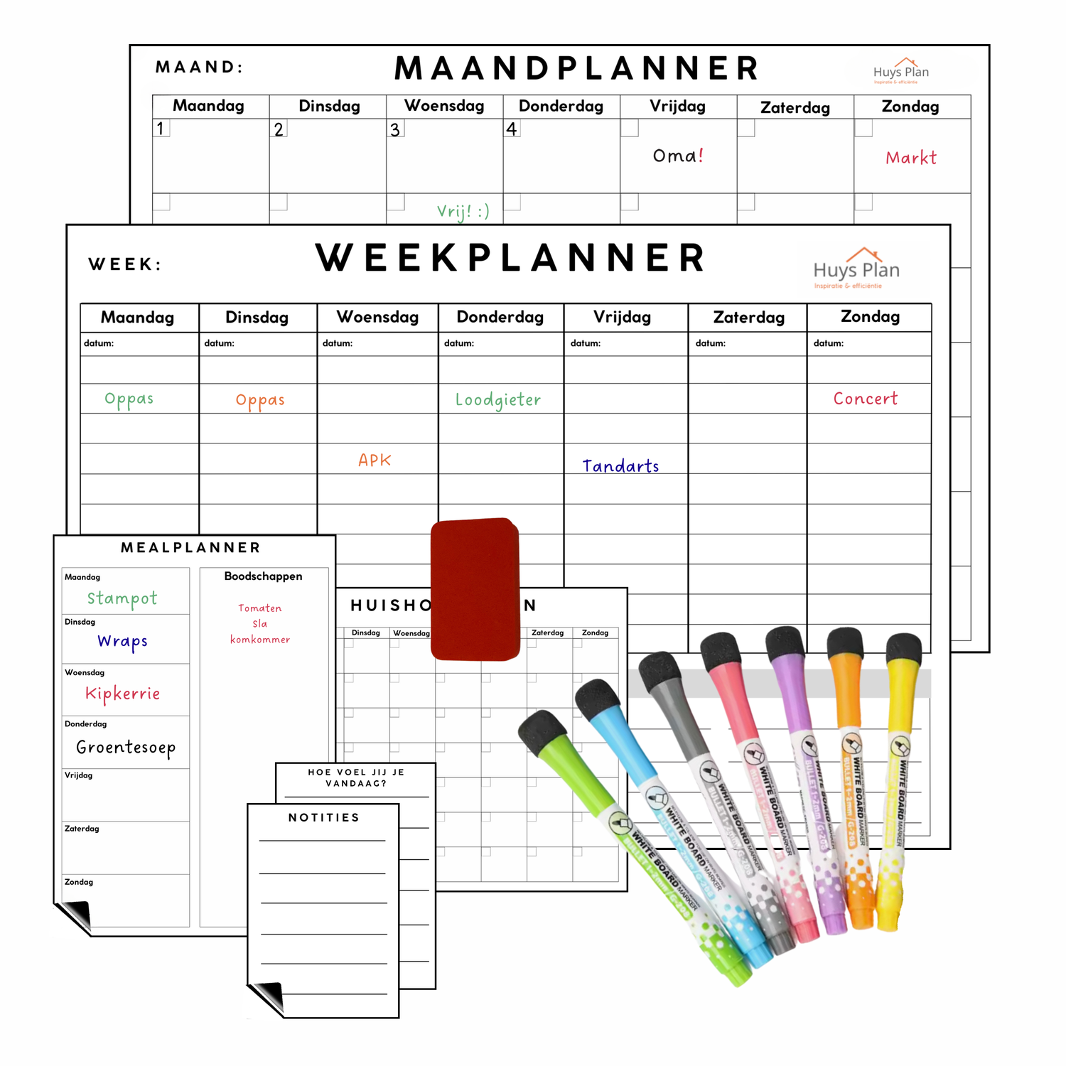 De magnetische planner van Huysplan is geboren uit mijn eigen behoefte aan houvast en structuur, en heeft mijn leven totaal veranderd. Geen losse papiertjes meer, geen stress over vergeten afspraken – alleen een helder overzicht op een vaste plek. Deze planner helpt me elke dag om rust te vinden en mijn doelen te bereiken, zonder het overweldigende gevoel dat planning soms kan geven.